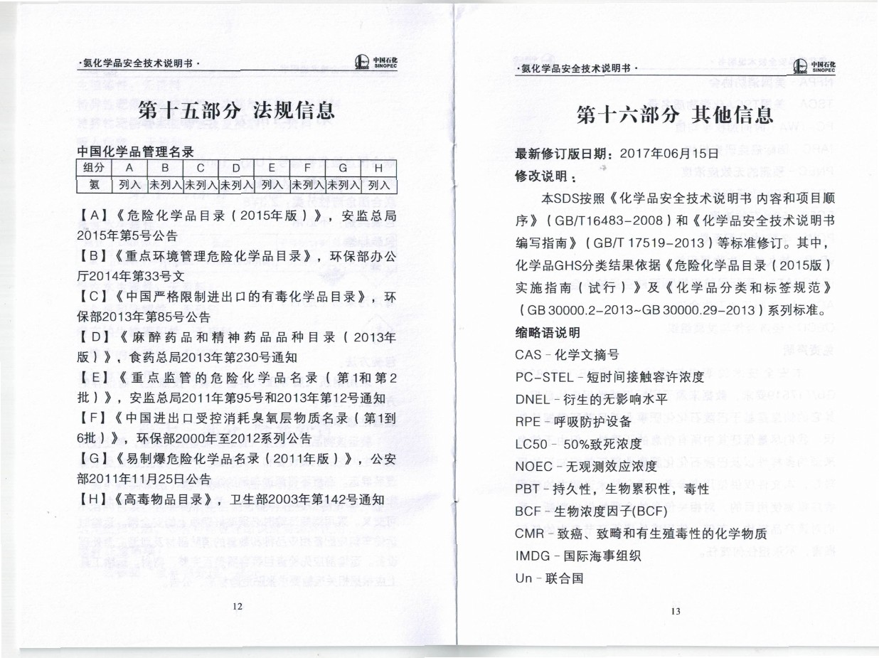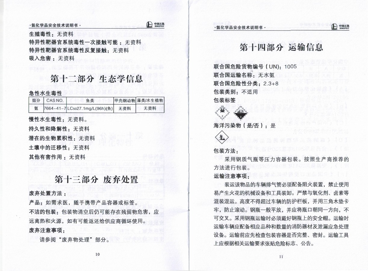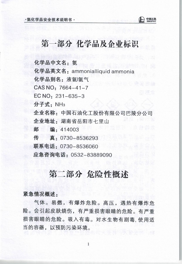 液氨產(chǎn)品說明書